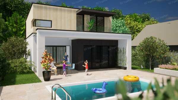 Most az Öné lehet egy MODERN, 208 nm-es, 5 SZOBÁS CSALÁDI HÁZ, amely szerkezetkész állapotban várja új tulajdonosát. Ez a tágas ingatlan TÖKÉLETES választás mindazok számára, akik saját elképzeléseik és igényeik szerint szeretnék befejezni álmaik otthonát. A ház POROTHERM TÉGLÁBÓL készült, amely kiváló HŐ- és VÍZSZIGETELÉST biztosít. A 15 cm-es homlokzati hőszigetelés, valamint a bitumenes vastaglemez alapozás garantálják a hosszú élettartamot és az energiatakarékosságot. A kényelmes fűtésről egy 11 kW-os DAIKIN HŐSZIVATTYÚ gondoskodik, amely PADLÓ- és MENNYEZETI HŐLEADÁSSAL rendelkezik. A hűtést szintén mennyezeti rendszer biztosítja. A nyílászárók háromrétegű, HŐSZIGETELT műanyag ablakok, antracit külső és fehér belső színkombinációval. Az innovatív elektromos rendszer ELŐKÉSZÍTÉSE folyamatban van, amely tartalmaz riasztórendszert, kamerarendszert, valamint TELEFONRÓL IS VEZÉRELHETŐ termosztátokat és motoros redőnyöket. A belső válaszfalak szintén POROTHERM TÉGLÁBÓL épültek, a belső burkolatok és szerelvények pedig a VELEMÉNYE SZERINT VÁLASZTHATÓAK. A külső tér rendezett, Viacolor térburkolatú garázsbeállóval, automata hőszigetelt garázskapuval és ELEKTROMOS NAGYKAPUVAL rendelkezik. Opcionálisan egy 3x6 MÉTERES KÜLTÉRI MEDENCE is kialakítható. Az ingatlanhoz tartozó kert kialakítására is rugalmas lehetőségek állnak rendelkezésre, beleértve épített virágládákat, pergolás pihenősarkot és öntözőrendszert. Ez az ingatlan tökéletes választás mindenki számára, aki egy ENERGIATAKARÉKOS, MODERN otthont keres zöldövezetben, közel a fővároshoz. Ne hagyja ki ezt a KÉTSÉGKÍVÜL KIVÉTELES LEHETŐSÉGET, és tegye meg az első lépést álmai otthona felé! További információval és megtekintéssel kapcsolatban, vegye fel velem a kapcsolatot. Tari Tímea +36706777703