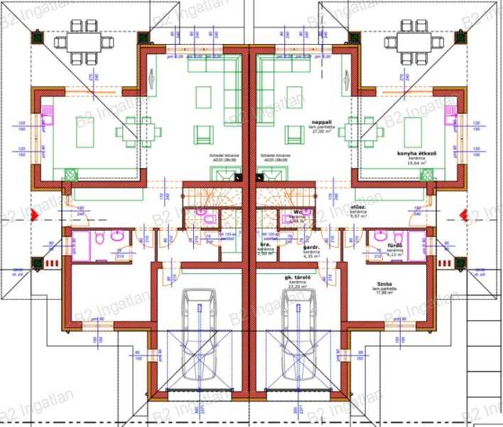 Eladó prémium kivitelezésű ikerházak Diósd zöldövezeti részén,luxus lakóparkban, erdős környezetben, távol az autópálya zajától! Két ütemben, összesen 16 kétlakásos és 1 egylakásos lakóépület kerül átadásra. Az első ütem várható befejezése 2025 december. REMEK BEFEKTETÉS, KIVÁLÓ ÁR-ÉRTÉK ARÁNY! PRÉMIUM KIVITELEZÉS, KORSZERŰ TECHNOLÓGIA! A kétlakásos társasházak 1050 - 1065 nm-es telken épülnek, a lakásokhoz tartozó telekhányadok a Társasházi Alapító Okiratba bejegyzésre kerülnek. A lakások önálló helyrajzi számmal rendelkeznek. A lakások azonos méretűek, alaprajzi elrendezés szerint egymás tükörképei. Lakásonként egy beállásos garázs, tágas nappali - étkező - konyha, 4 teljes értékű szoba, 3 fürdőszoba, külön háztartási helyiség, nagy méretű terasz kerül megépítésre. Hasznos alapterület 172,65 nm. Az energiatakarékos lakások fűtését és hűtését hőszivattyú teszi lehetővé /hőleadás padlón-, hűtés mennyezeten keresztül történik/, az ingatlanok szellőztetőrendszerrel felszereltek. Rövid műszaki ismertető: •vasbeton sávalap •30 cm vastag Porotherm teherhordó falak •a lakások légréssel épített 2x30cm vastag Porotherm teherhordó falakkal érintkeznek •10cm vastag Porotherm belső válaszfalak •köztes-és zárófödém monolit vasbeton szerkezet •tetőhéjalás korcolt lemezfedés •homlokzati szigetelés 20cm vastag Dryvit rendszerű hőszigetelés •födémen 30cm vastag kőzetgyapot szigetelés •nyílászárók 3 rétegű 5 légkamrás műanyag szerkezetű nyílászárók, kívül aranytölgy, belül fehér színben Felszereltség lakásonként: - fűtés -hűtésrendszer: hőszivattyúról működtetett padlófűtéses rendszer minden helyiségben, hűtés mennyezeti - szellőztetőrendszer - használati melegvíz előállítás: hőszivattyú által előállított melegvíz, 300 literes indirekt tárolóval - napelemrendszer előkészítés - vízlágyító berendezés - digitális, öntanuló termosztátok - nappaliban kandallókémény - burkolatok bruttó 10.000,-Ft/nm áron, szaniterek, beltéri ajtók… árlista alapján választhatók - riasztórendszer kiépítés nyitás-és mozgásérzékelőkkel, kamerarendszer előkészítéssel - motoros vezérlésű alumínium redőnyök, ablakokon szúnyoghálók - franciaerkélyek biztonsági üvegpanellel - motoros garázskapu - elektromos autótöltőnek előkészítés - kerítés Jelenleg elérhető változatok: 4 ; 5 ; 6 ; 12-es számú kétlakásos lakóépületek 1-es és 2-es számozású, azonos méretű és alaprajzú lakásai: Nettó 179.35nm, nappali + 4 szoba, 3 fürdőszoba, 1 állásos garázs Vételár: 193.000.000,-Ft 10-es számú kétlakásos lakóépület lakásai: 2-es számozású lakás: Nettó 185.62nm, nappali + 4 szoba, 3 fürdőszoba, 1 állásos garázs Vételár: 197.000.000,-Ft /az újabb értékesítési alaprajz szerint a hasznos alapterület 186.52nm/ 13-as számú kétlakásos lakóépület lakásai: 1-es számozású lakás: Nettó 172.65nm, nappali + 4 szoba, 3 fürdőszoba, 1 állásos garázs Vételár: 185.000.000,-Ft 2-es számozású lakás: Nettó 187.71nm, nappali + 4 szoba, 3 fürdőszoba, 1 állásos garázs Vételár: 199.000.000,-Ft 3-as számú önálló családi ház: Nettó 242.66 nm /értékesítési alaprajz szerint 243.54nm/, nappali + 5 szoba, 3 fürdőszoba, kétállásos garázs Vételár: 279.00.000,-Ft Az ingatlanvásárlás nemcsak döntés, hanem folyamat is – ebben mindenben számíthat rám. Segítek a hitelügyintézésben, megbízható ügyvédi hátteret biztosítok, és ha az új otthon megvásárlásához a jelenlegi ingatlanát is el kell adni, abban is örömmel közreműködöm. További részletes információval, és személyes megtekintéssel kapcsolatban várom hívását! Üdvözlettel: Tari Tímea +36706777703