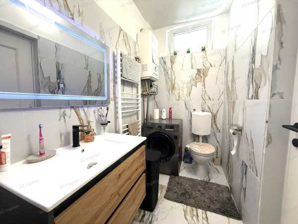 Kertkapcsolatos, 70 m²-es földszinti lakás kétgenerációs kialakítási lehetőséggel – saját tárolóval és bővíthető térrel Eladó egy kivételes adottságú, földszinti, 70 négyzetméteres lakás Pesterzsébeten, csendes, mégis jól megközelíthető környezetben. Az ingatlan saját, intim kertrésszel és egy kb. 24 négyzetméteres, kizárólagos használatú tárolóval rendelkezik, amely igény esetén közvetlenül a lakáshoz csatolható, tovább növelve a hasznos alapterületet. A lakás jelenlegi elrendezése lehetővé teszi két, külön bejáratú lakrész kialakítását egy egyszerű válaszfal segítségével, így ideális lehet akár két generáció számára is. Az egyik lakrészen belül külön nappali, gardrób, hálófülke, fürdőszoba és konyha található, míg a másikban egy tágasabb szoba, nappali, valamint egy zuhanyzós fürdőszoba áll rendelkezésre. Az alaprajzi elrendezés rugalmasan alakítható, többféle élethelyzethez is könnyedén igazítható. Az ingatlan teljes körű felújításon esett át: megújultak a burkolatok, szaniterek, nyílászárók, a modern enteriőr minden részletében tükrözi az átgondolt kivitelezést. A fűtés gázalapú, radiátoros hőleadással, amelyet korszerű, jól karbantartott rendszer biztosít, a kellemes hőérzetről pedig helyiségenként felszerelt hűtő-fűtő klímák is gondoskodnak – így az év minden szakában komfortos környezetet nyújt az ingatlan. Az ingatlan mellett lehetőség van további 8 nm tároló és egy 15 nm-es fedett gépkocsibeálló megvásárlására is, melynek ára 7 millió forint. A környék ellátottsága kiváló: pár perc sétával elérhető egy Penny Market, Interspar, gyorsétterem, pékség, gyógyszertár és egyéb kényelmi szolgáltatások. Több iskola és óvoda is található a közelben, ami családosok számára is vonzóvá teszi a környéket. Tömegközlekedés szempontjából kifejezetten kedvező az elhelyezkedés: a Mártírok útja néhány háznyira található buszmegállójából elérhető a 99-es, 123-as, 151-es, 948-as és 923-as járat is, melyekkel gyorsan elérhető a Határ út metrómegálló vagy a belváros iránya. A megálló gyalog mindössze 2–3 perc távolságra van az ingatlantól, így autó nélkül is könnyen közlekedhető a város. Ez a lakás tökéletes választás lehet fiatal pároknak, akik első közös otthonukat keresik, de ideális megoldást nyújthat összeköltöző családtagok számára is, vagy akár azoknak, akik befektetési lehetőséget keresnek – külön lakrész kiadásával kiegészítő bevétel is könnyedén realizálható. További kérdéseivel és személyes megtekintéssel kapcsolatban várom hívását! Üdvözlettel: Tari Tímea +36706777703