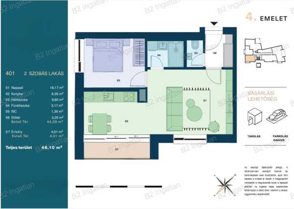 Eladó a VIII. kerület kedvelt, zöldebb részén, a Tisztviselőtelepen, egy 44 m²-es, negyedik emeleti, utcai nézetű lakás, amelyhez egy 4 m²-es erkély tartozik. A lakás észekkeleti fekvésű, világos, nappali plusz hálószobás kialakítású. Ugyanilyen alaprajzú lakás elérhető az ötödik és a hatodik emeleten is, emeletenként változó árral. Az ingatlan egy új építésű társasházban található, amelynek várható átadása 2026 májusa. Az épület A++ energiaosztályú, lifttel felszerelt, korszerű műszaki megoldásokkal készül. Műszaki jellemzők: – monolit vasbeton szerkezet – háromrétegű hőszigetelt nyílászárók, redőny előkészítéssel – központi VRF rendszerű padlófűtés – hűtés előkészítés fan-coil rendszerhez – minden fogyasztás egyedi mérőórákkal Belső kialakítás: – fürdőszobában kerámia burkolatok, porcelán szaniterek, beépített tartályos fali WC – elektromos törölközőszárítós radiátor – nappaliban laminált parketta vagy vinyl burkolat – konyhában mosogatógép csatlakozás (konyhabútor és gépek nélkül) Opcionálisan vásárolható: – tároló: 700 000 Ft / m² – fedett teremgarázs hely: 8 000 000 Ft / db – felszíni parkoló: 7 000 000 Ft / db A lakás világos tájolásának és nagy erkélyének köszönhetően kellemes életteret biztosít, modern műszaki tartalommal és alacsony fenntartási költségekkel. További kérdéseivel, illetve személyes megtekintés egyeztetésével kapcsolatban várom megtisztelő hívását. Üdvözlettel: Tari Tímea +36706777703