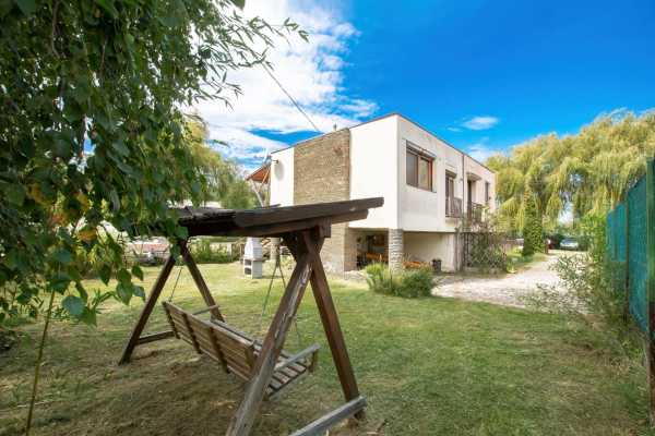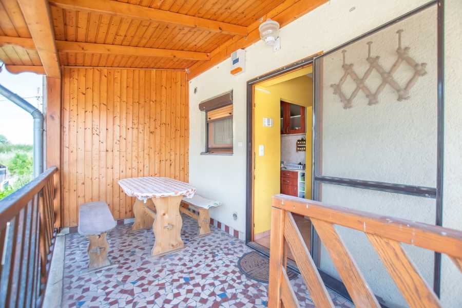 ----------Szabadstrand jobbra 250, balra 400 méter ----------- A két lakás külön autós és személybejárattal, közműórákkal, telekrésszel rendelkezik, de igény esetén össze is nyitható. Lakásonként nappali étkezővel, szoba franciaerkéllyel, fürdőszoba, konyha és terasz. A különleges és kedvelt építészeti megoldás a vízközeli területeken terjedt el, előnye, hogy az épület nem tud vizesedni, az alsó rész tárolóként, de beépítve is funkcionálhat. A kínálatban szereplő ingatlan utcafronti lakásának alsó része is beépített, zuhanyzóval wc-vel, konyhával és kandallóval is ellátott. A hátsó lakás alsó része nyitott csónak tároló, egy zárható kisebb szerszám tárolóval. A víz közelségének köszönhetően itt a növények a legnagyobb kánikulában locsolás nélkül is zöldek. Mindkét lakás konvektorokkal fűthető a hátsóban hűtő-fűtő klíma is van. Utolsó utca lévén nincs átmenő forgalom, ide csak az jön akinek dolga van, vagy aki eltévedt. A szomszédság rendezett, összetartó közösség. Mindkét strandon van játszótér, vizesblokk és öltöző, a nyaralótól balra lévőben büfé is. Sajnos az első lakásról kulcs macera miatt nem tudtam fotót és alaprajzot készíteni, amit hamarosan pótolok. Állapotra és elrendezésre hasonló az ikréhez. Az ingatlant ajánlom családoknak, barátoknak, akiknek fontos az 'együtt, de még is külön', és befektetésre is sokkal inkább, mint a 80 milliós pesti panelt.