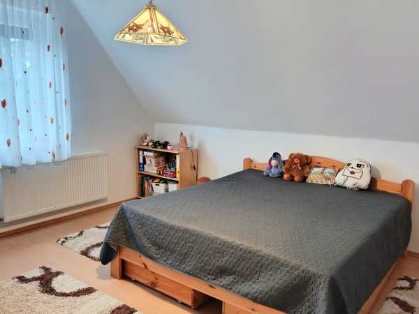Nyíregyháza belvárosának csendes, nyugodt utcájában eladó egy 128 m²-es, szintes, önálló családi ház, amely egy 597 m²-es, parkosított, térkövezett telken helyezkedik el. Az ingatlan 1995-ben épült, 2020-ban felújításon esett át, így korszerű műszaki tartalommal és kellemes, otthonos hangulattal rendelkezik. Főbb műszaki jellemzők: 38-as Porotherm tégla falazat cserépfedésű tető, födémszigeteléssel műanyag nyílászárók redőnnyel kondenzációs kazán, 3 körös fűtési rendszer padlófűtés és radiátoros hőleadás 2 db 3,5 kW-os hűtő-fűtő klíma alacsony rezsi Belső tér és felszereltség: egyedi, beépített, gépesített konyha konyhaszigettel világos, napfényes helyiségek praktikus, jól élhető elrendezés Elrendezés Földszint: fedett terasz, előszoba ,nappali, étkező + konyha ,fürdőszoba, társalgó Emelet: 3 külön nyíló hálószoba ,fürdőszoba, világos társalgó További extrák: 60 m²-es pince (tároló, műhely vagy egyéb funkcióra is alkalmas) 21 m²-es, könnyűszerkezetes, szigetelt garázs árnyékos, sütögetésre alkalmas kertrész,fúrt kút szeparált udvar, kívülről nem belátható Környezet: csendes, rendezett utca kiváló közlekedés ideális családi otthon, de befektetésnek is remek lehetőség Ez az ingatlan tökéletes választás azok számára, akik nyugodt, privát környezetben szeretnének élni, mégis mindenhez közel. Bővebb információért, teljes körű, ingyenes, bankfüggetlen ügyintézéssel várom hívását!