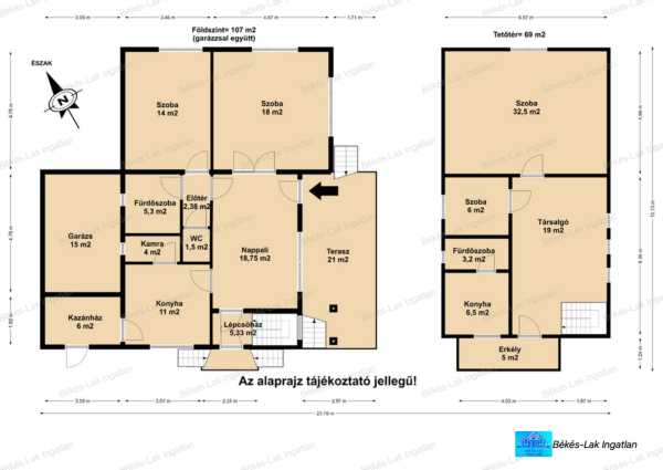 Békés megye északi részén, a Hármas-Kőrös partján található Gyomaendrőd, egy kisváros amely 13 ezer lakossal rendelkezik. A 46-os számú úton keresztül közelíthető meg, Békéscsabától kb.: 38 perc, Budapest mintegy 2 óra alatt elérhető. A 4 szobás ingatlan a Hunyadi utcában található 1124 m2-es telken. Az ház 1984-ben épült, beton alapon, beton lábazaton, tégla falazattal. Az épület, ami kettő szinten összesen 175 m2 hasznos alapterülettel rendelkezik, dupla komfortos, ami akár két családnak is biztost elég helyet a kényelmes lakhatásra. A nagy méretű telek is elegendő helyet biztosít a kellemes kikapcsolódásra, családi rendezvények, kerti szabadtéri programok számára. Az udvar (telek) gondozott, parkosított, árnyékos, termő gyümölcsfákkal telepített. Az épület jellemzői: A földszinti rész egy nagyméretű, több mint 20 m2 alapterületű teraszon keresztül közelíthető meg. A bejárati ajtón keresztül egy tágas nappali helyiségbe jutunk, melyből nyílnak a különbjáratú hálószobák, a fürdő és különálló toilette, valamint konyha és étkezőbe mehetünk. A nappaliból egy ajtón keresztül tudunk felmenni az emeleti részre. A tetőtérben van egy tágas társalgó, egy nagyméretű hálószoba, és egy kis szoba, valamint egy konyharész és ebből nyíló fürdőszoba. A tetőtér 69 m2-es hasznos alapterületű és erkéllyel is rendelkezik A földszinti rész 106 m2 hasznos alapterületű, és a konyhából nyílik a kazánház, valamint egy udvari bejáratú garázs is található. Elektromos hálózata 3*16 Amper nappali, és 1*10 Amper vezérelt árammal rendelkezik. Fűtése gáz-cirkó kazánnal (radiátoros hőleadókkal), egy hűtő-fűtő klímaberendezéssel, és kandallóval, a melegvíz ellátása elektromos bojlerrel megoldott. A belső terek nagyok, kényelmesek, a földszinti hálószobák parkettázottak, ezzel egy kellemes, nyugodt hangulatot sikerült elérni. A telken található még egy fából készült garázs, egy téglából készült melléképület, és egy üvegház, valamint ásott kút (udvar locsolására ideális). A gyomaendrődi termálfürdő a háztól kb.: 10 perc sétatávolságra található, de a belvárost is néhány perces gyaloglással elérhetjük. A környéken iskola, óvoda, üzletek, sportcsarnok, játszótér, strand is megtalálható. Kedvező fekvése és a modern kialakítása miatt ajánlom azok számára, akik tágas, jól élhető családi házat keresnek. Felkeltette a ház az Ön érdeklődését? Ne maradjon le erről a kiváló lehetőségről – tekintse meg személyesen is! Hívjon, egyeztessünk időpontot. A jelen hirdetésben rögzített, az ingatlannal kapcsolatos adatok az Eladó/Megbízó tájékoztatása alapján kerültek meghatározásra. A Békés-Lak Ingatlan teljeskörű ügyintézéssel áll az eladók és a vevők rendelkezésére! Ha eladná ingatlanját, keressen bizalommal. Ingatlan értékbecslés készítését rövid határidővel vállaljuk! Az adásvételi szerződés megkötéséhez igény szerint megbízható ügyvédi közreműködést biztosítunk, és segítséget nyújtunk az adásvételhez kapcsolódó ügyek intézéséhez, hiteligényléshez, Energetikai tanúsítványok elkészítéséhez!