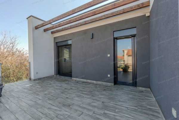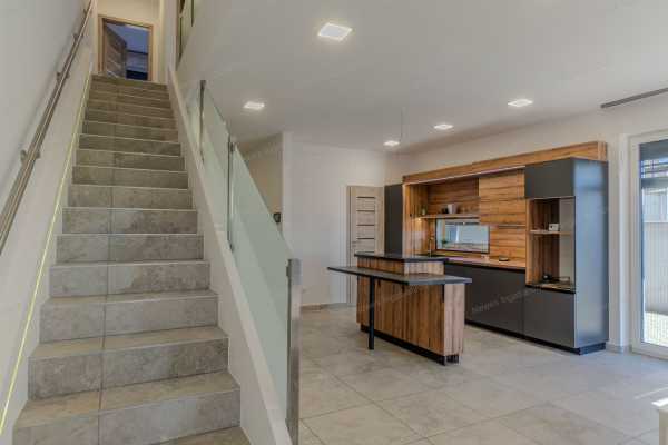 Miskolc egyik legkeresettebb, új építésű családi házas övezetében, Martin-kertváros igényes részén kínálok megvételre egy 2021-ben épült, magas műszaki színvonalon kivitelezett, kétszintes prémium ikerházat. Az ingatlan letisztult építészeti megjelenése, harmonikus belső terei és gondosan megválasztott minőségi anyaghasználata időtálló eleganciát sugároz. Térélmény és elosztás A földszinten tágas, világos amerikai konyhás nappali biztosítja a családi élet központját, közvetlen terasz- és kertkapcsolattal. Ezen a szinten egy hálószoba, fürdőszoba és kamra is helyet kapott. Az emeleti privát élettérben három hálószoba, gardrób, háztartási helyiség és egy kényelmes méretű fürdőszoba található. A kertre néző szobák nagyméretű teraszai tovább erősítik a szabadság és a nyugalom érzetét. Műszaki tartalom – kompromisszumok nélkül - kondenzációs kazán által működtetett padlófűtés - hűtő-fűtő klímarendszer - prémium minőségű, hőszigetelt nyílászárók - teljes körű elektromos zsalúzia - egyedileg tervezett, beépített bútorzat (a vételár részét képezi) - rejtett LED hangulatvilágítás - riasztórendszer, videós kaputelefon - távirányított elektromos kapu Az előkert térkövezett, a parkosított hátsókert automata öntözőrendszerrel felszerelt. A kert hátsó területén kialakított beton alap további exkluzív terasz vagy kültéri konyha megvalósítására ad lehetőséget. Lokáció Nyugodt, biztonságos, fiatalos lakókörnyezet, kiváló infrastruktúrával. Az autópálya gyorsan elérhető, Miskolc belvárosa mindössze néhány perc autóval. Ez az ingatlan ideális választás azok számára, akik modern, energiatakarékos, elegáns otthont keresnek kompromisszumok nélkül - értékálló környezetben. Várom megtisztelő megkeresését. Bankfüggetlen hiteltanácsadással a teljes vásárlási folyamat során támogatást nyújtunk.