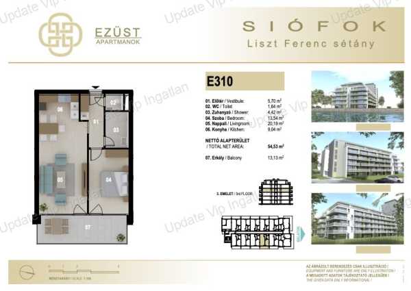 AZ UPDATE VIP INGATLANIRODA KINÁLATÁBÓL: SIÓFOK SZÉPLAK/EZÜSTPART HATÁRÁN, ÚJÉPÍTÉSŰ, VÍZPARTI, BALATONI PANORÁMÁS, MEDENCÉS LAKÁS ELADÓ! AZONNAL BIRTOKBAVEHETŐ! A hirdetésben szereplő lakás paraméterei: Harmadik emeleti lakás -Lakótér: 53m2 -Terasz: 12m2 -Újépítés -Közvetlen vízparti elhelyezkedés! -Minőségi tervezés, kivitelezés! -Lakás minősítés (5% Áfa) Külön megvásárolható: Felszíni gépkocsi beállóhely (~11,25m2): 4.9MFt Siófok ezen hangulatos, érintetlen panorámás részén, a gondos és alapos tervezői munka eredményeként kerül megvalósításra a közvetlen vízparti 71 lakásos, 5 emeletes, újépítésű társasház. (Az emeletek kényelmes megközelítését 13 személyes lift szolgálja ki.) A tervezés során fontos szempont volt a praktikum, a használhatóság, a fenntarthatóság, melyet a korábban értékesített 750 siófoki lakás és nyaraló tervezésének és értékesítésének tapasztalata szült, megannyi vásárlói visszajelzés alapján. A társasház második otthont kínál a Balaton szerelmeseinek, ahol akár egész évben élvezhetik a korszerű apartmanok kényelmét és a természet közelségét, amely ugyanakkor egy kivételesen értékálló befektetés is! A társasház tetején korlátozott számú exkluzív panorámás grill és napozó tetőterasz kerül kialakításra (ahol egyedi vízvétel és áramvétel kerül kialakításra). -Fűtés-Hűtés: LG Multi V-5 hőszivattyús rendszer mely a 2023-as év energia szabványainak megfelelően, kivételesen energiahatékony üzemeltetést tesz lehetővé. -A szobákba, nappalikba felszerelt beltéri egységek léghűtést és légfűtést biztosítanak, melynek köszönhetően rendkívül gyorsan hűtik le vagy fűtik fel a helyiségeket. -Szigetelés: 15 cm vastag külső hőszigetelés -Nyílászárók: 3 rétegű üvegezéssel készülnek, külső oldalon antracit színben. -A lakáselválasztó falak fokozott hangszigetelésűek, plusz a födémekben 4 cm vastag hő/hangszigetelő táblák akadályozzák meg a függőleges irányú hangterjedést. -A lakások nappalijából és hálószobáiból a korlátlan panoráma élvezete rozsdamentes, szálcsiszolt oszlopokkal, kapaszkodókkal, ragasztott biztonsági üveg korláttal biztosított. -A több generációs családok kikapcsolódása érdekében, a beruházás keretein belül gyermekjátszótér és kültéri medencék állnak rendelkezésre tulajdonosok számára. -Az ingatlan előtt húzódó több mint 3 km hosszú szabadstrand, további gondozott zöldterületekkel, parti sétányokkal, sportolási lehetőséget kínáló kölcsönző helyekkel, valamint igényesen kialakított büfékkel szolgálja ki az itt nyaralók igényeit. -A lakópark területére a biztonság érdekében egyedi azonosítás után lehet majd csak belépni. Bővebb információért, megtekintés egyeztetésért, kérem keressen a megadott elérhetőségeimen! UPDATE VIP INGATLAN IRODA további szolgáltatásai: Energetikai tanúsítvány készítés, Díjmentes-bank semleges hitelügyintézés, Ügyvédi háttér, Közjegyző, Földhivatali ügyintézés, Építész, Lakberendező.